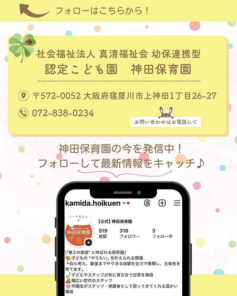 こんにちは!寝屋川市の神田保育園です。