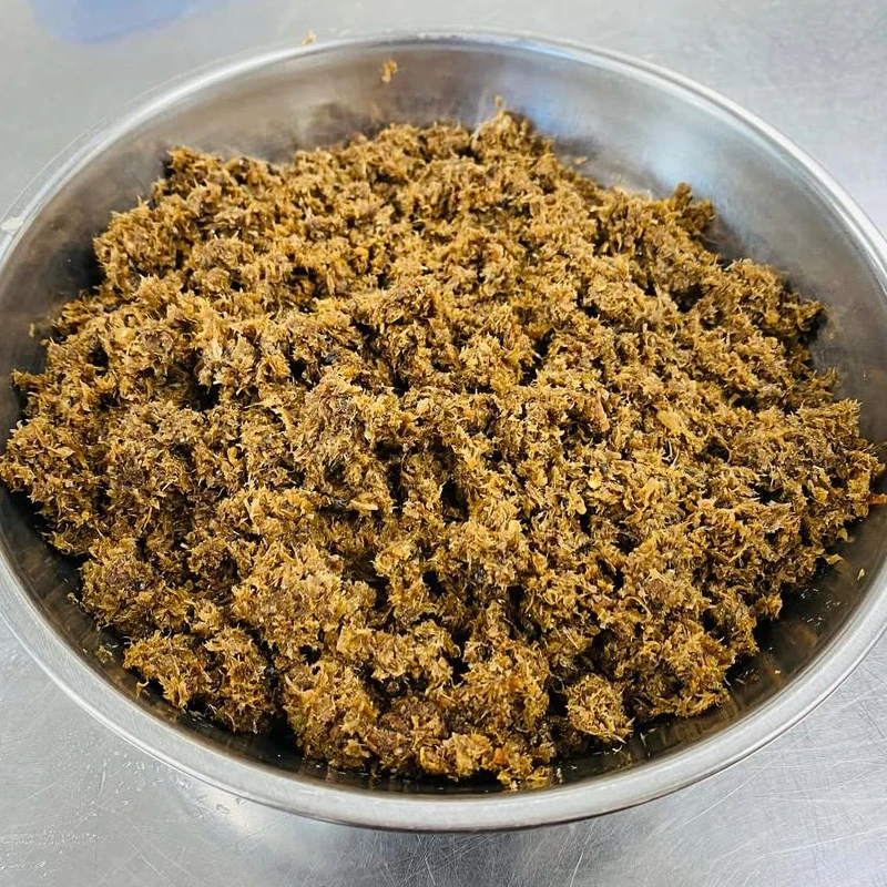 一度ミキサーで細かくし、醤油・みりん・砂糖で味付けしてご飯と混ぜ合わせています。