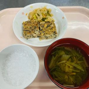 メニューは、パイタ焼き、れんこんサラダ、水菜のすまし汁です。